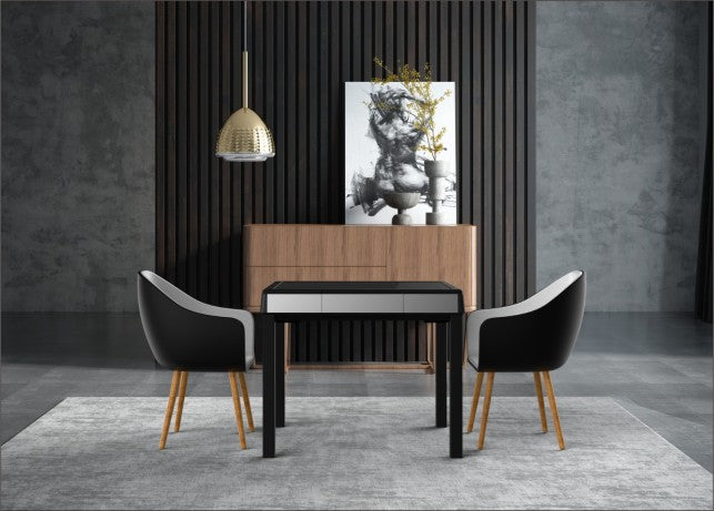 T650 42号 墨韵白,餐桌脚四腿,皮革软包边框,热风烘干消毒功能,黑色有机玻璃内扣盖板 墨韵白