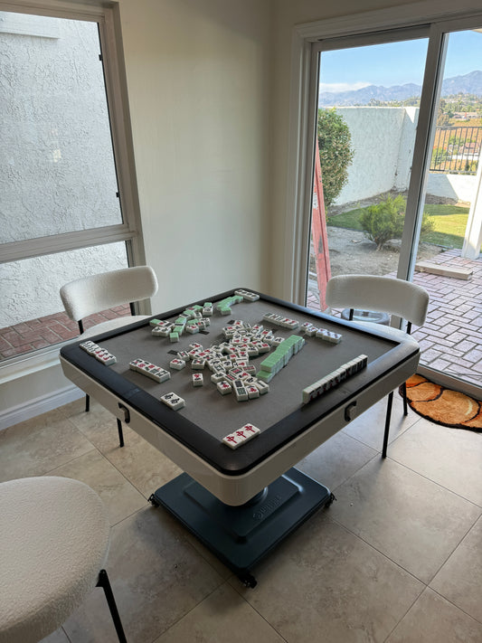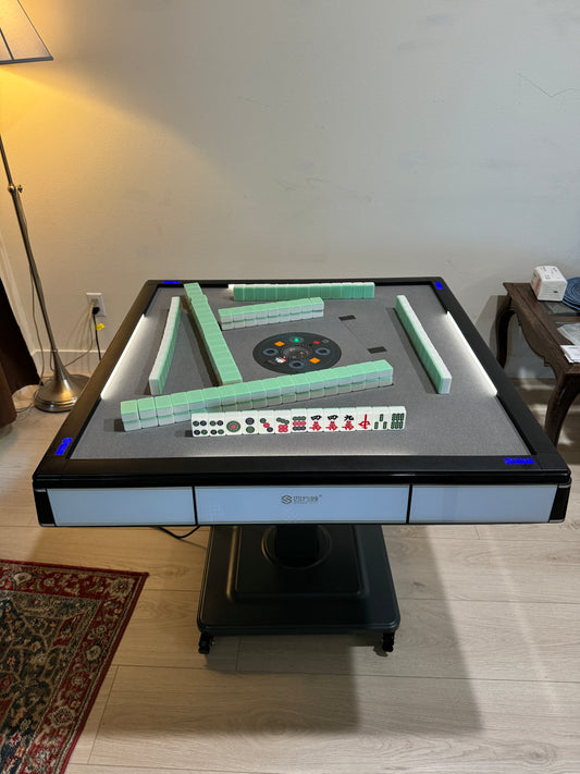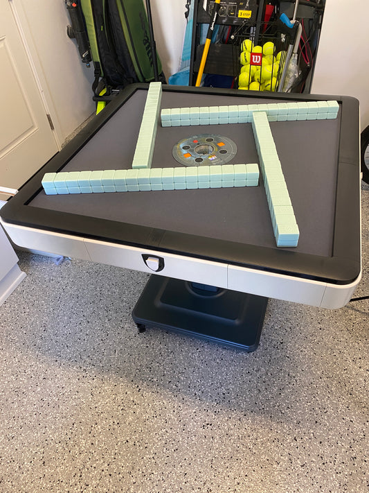 T350 Sifang City Automatic Folding Mahjong Table White Color with American Style 42mm numbered tiles 152 tiles per set Total two set of tiles. Standard two dices.