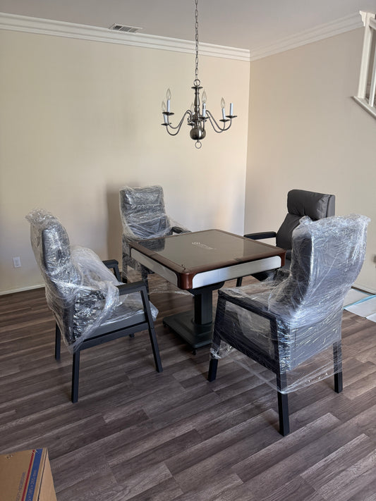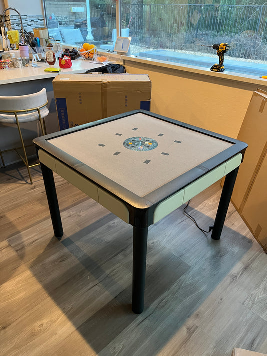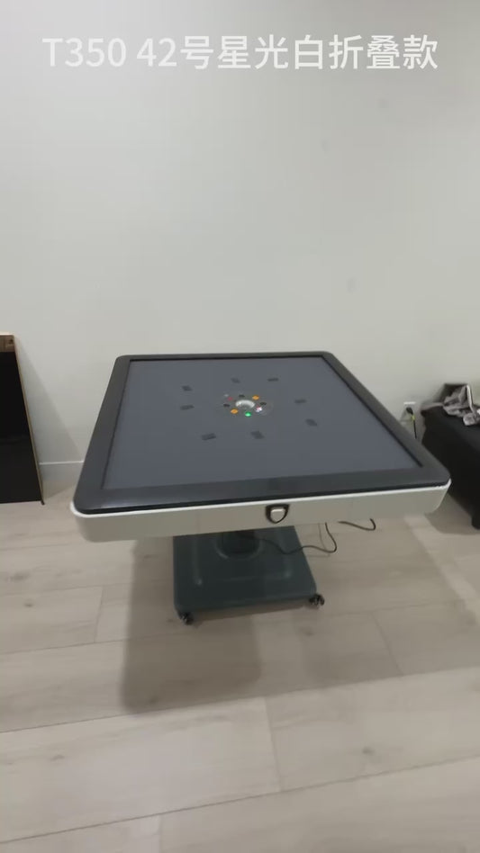 T350 42mm仿玉石麻将牌, 可折叠,高级灰桌布,星光白,两颗色子,110v电压,8ft 美规电源线,内扣玻璃盖板 店铺畅销款 Best Seller
