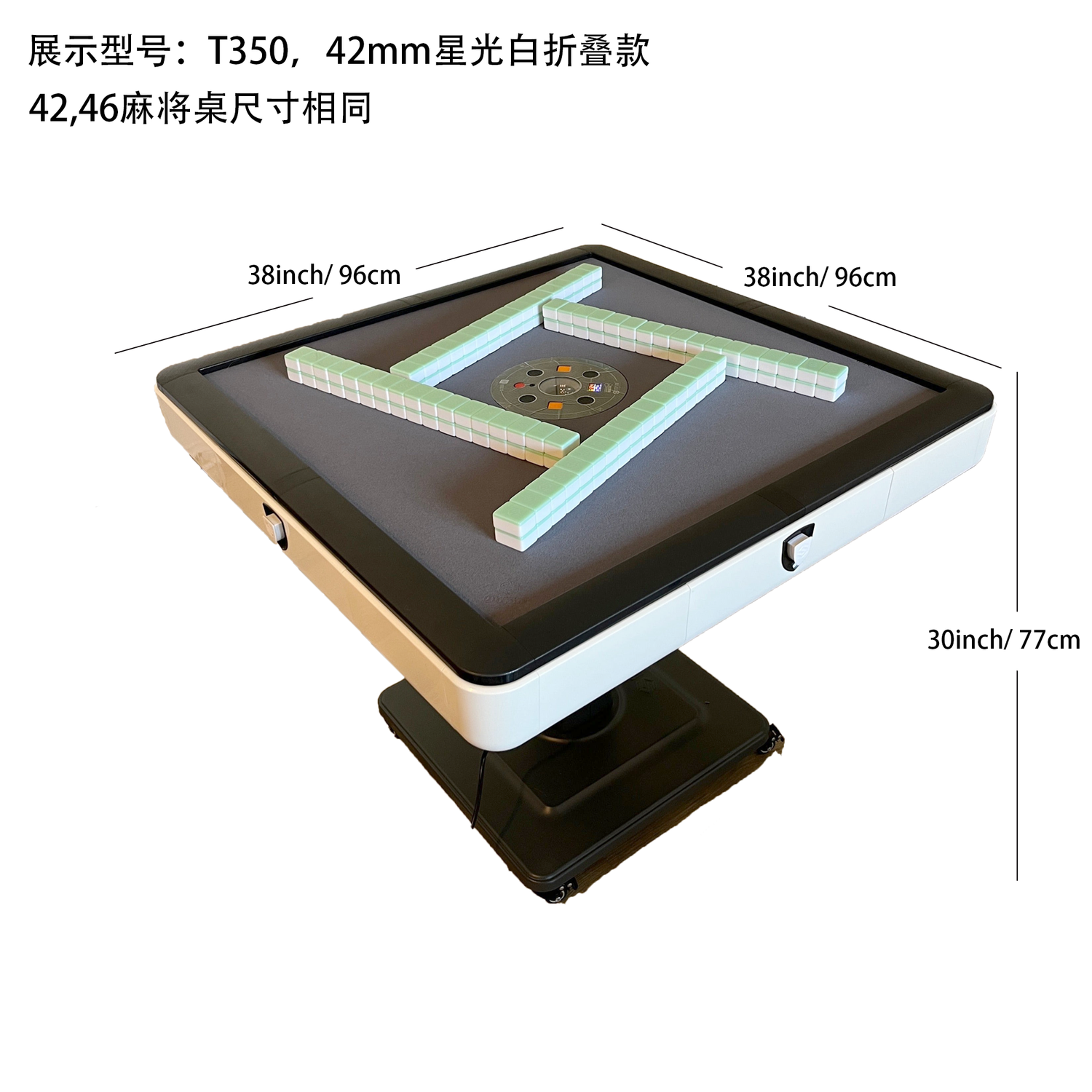 T350 46mm大牌手感好麻将机,标配单色白色绿色麻将牌,星光白,可折叠,内扣玻璃盖板