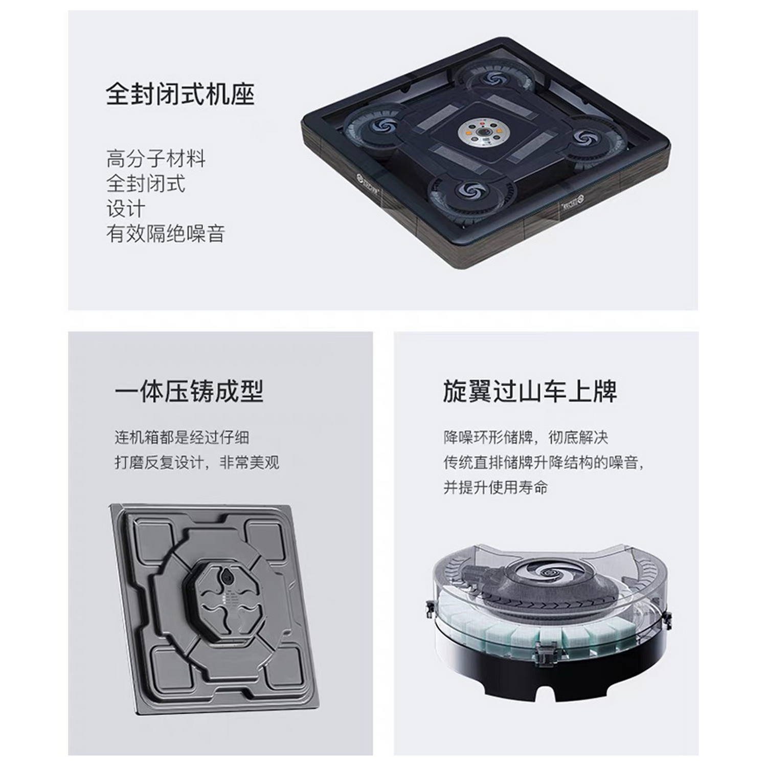 高度集成化结构,减少了4部需要的电机,降低了故障率,也缩小了麻将桌的宽度