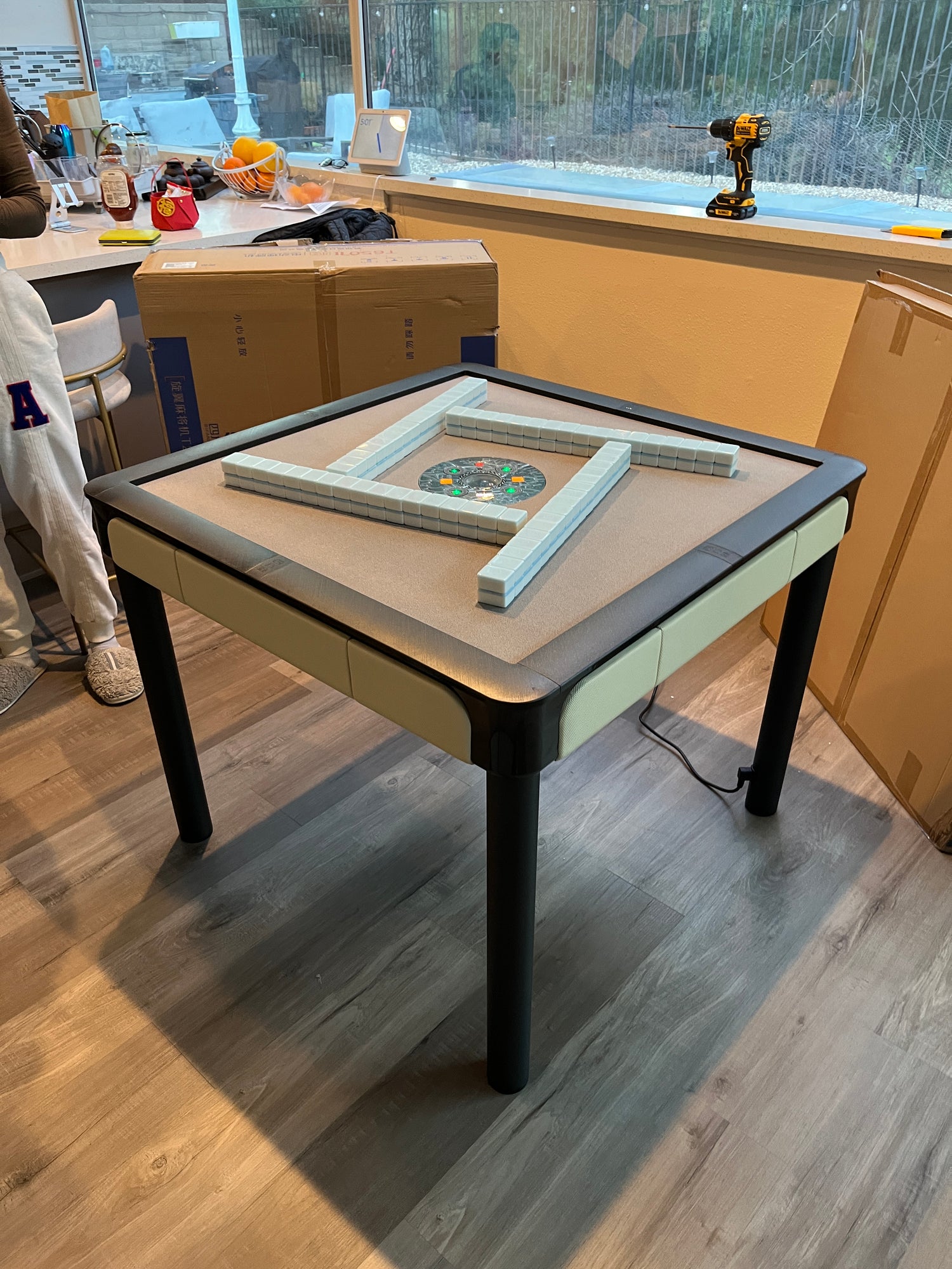 T350 42mm仿玉石麻将牌, 可折叠,高级灰桌布,星光白,两颗色子,110v电压,8ft 美规电源线,内扣玻璃盖板 店铺畅销款 Best Seller