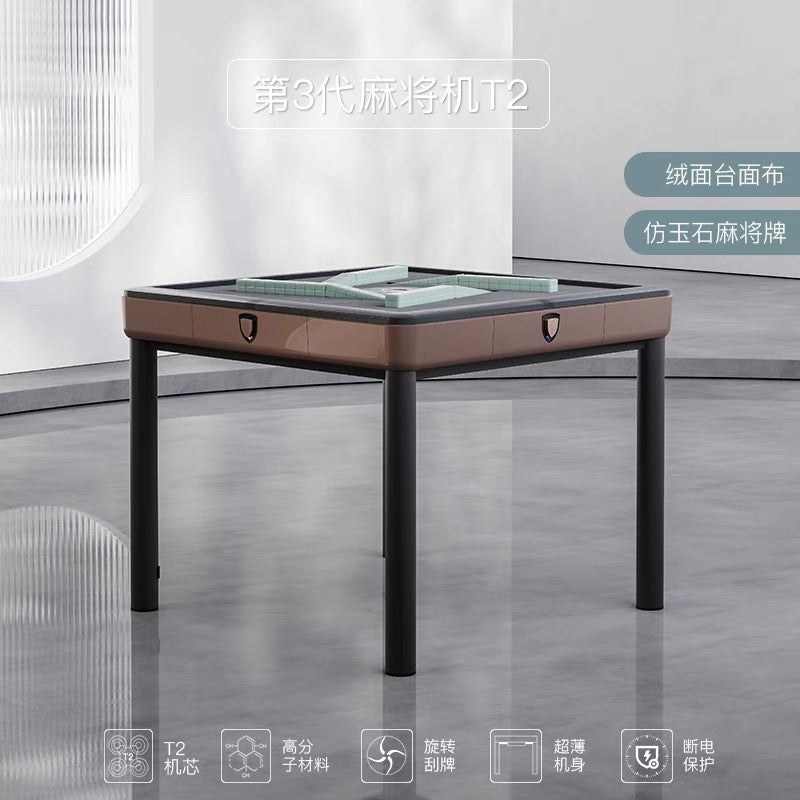 T350 42/46mm 麻将牌,四腿餐桌脚两用麻将机(丁香紫)内扣玻璃盖板