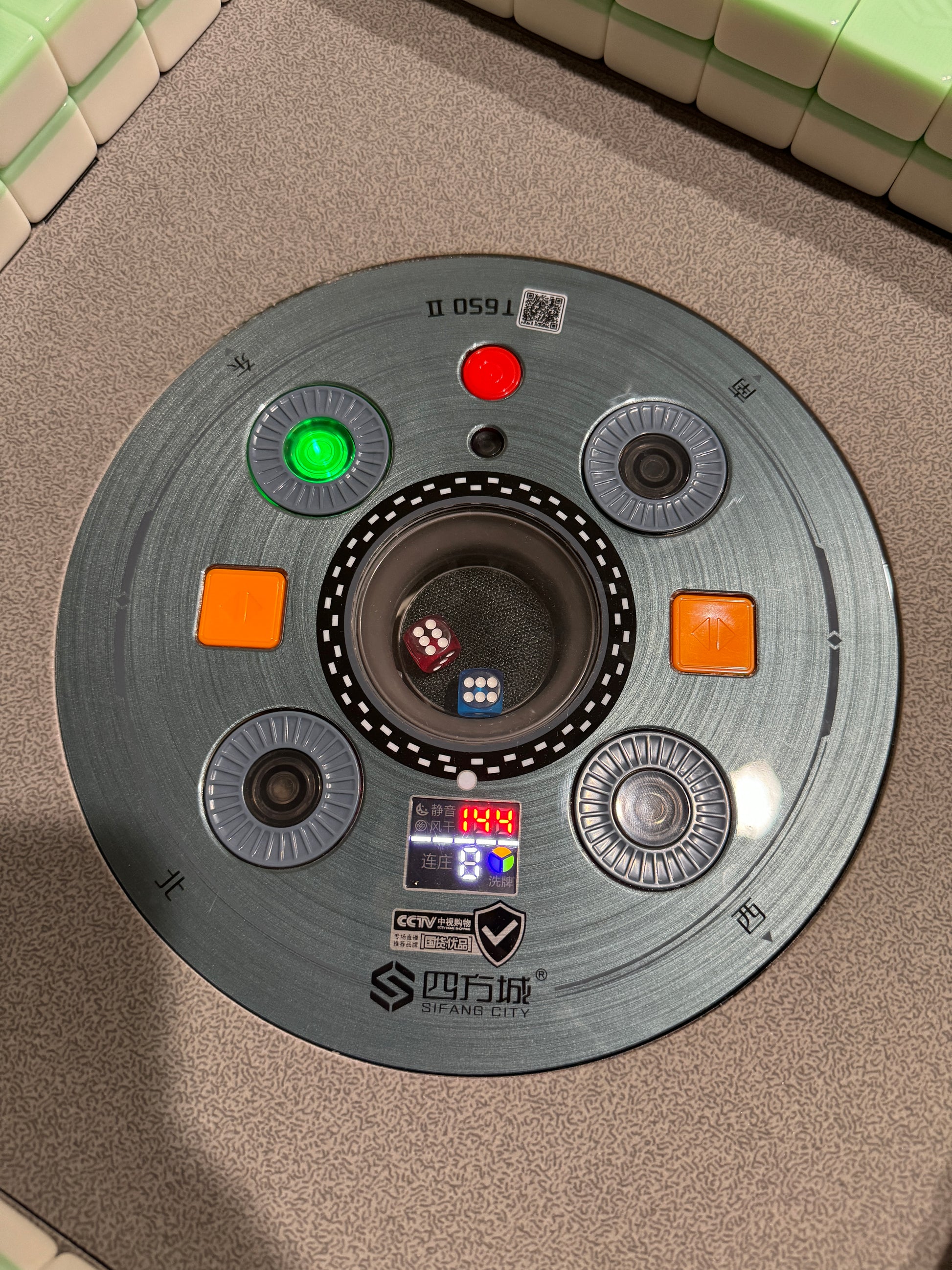 36号麻将机默认两颗色子,42,46,58号麻将机均为2颗色子。色子数量可以调节,需要额外色子请联系客服